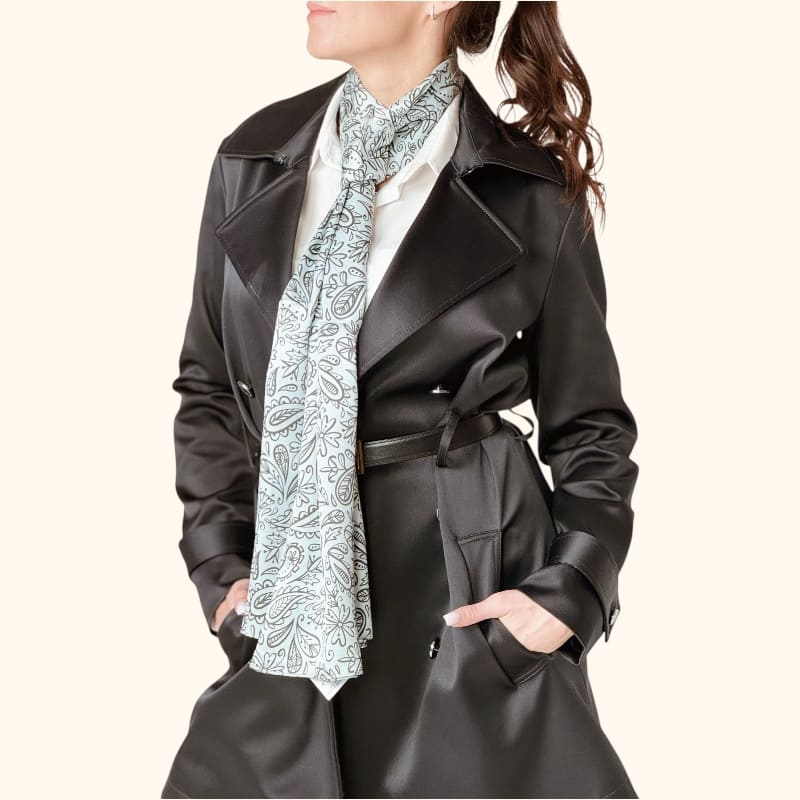 ✦ Ilgas natūralaus šilko šalikas yra universalus, ilgaamžis ir praturtina tiek kasdienį, tiek elegantišką moters įvaizdį