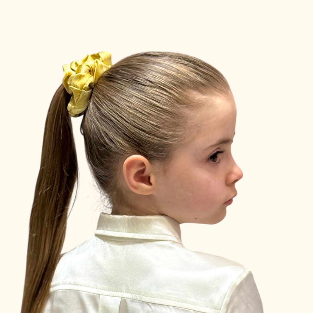 ✦ Didelė „Maxi“ gumelė – šilko juosta 4,5 cm pločio, tinka tiek ploniems tiek storiems plaukams.
