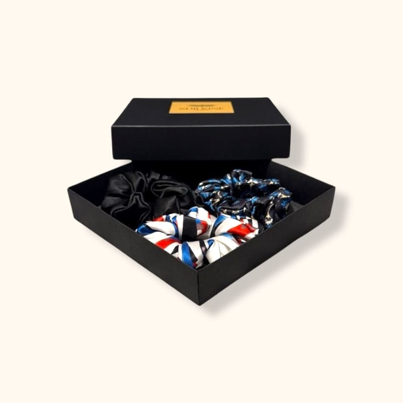 Prabangios, plaukų nepažeidžiančios gumelės, elegantiškai supakuotos juodoje dėžutėje – puiki dovana sau ar artimam žmogui.