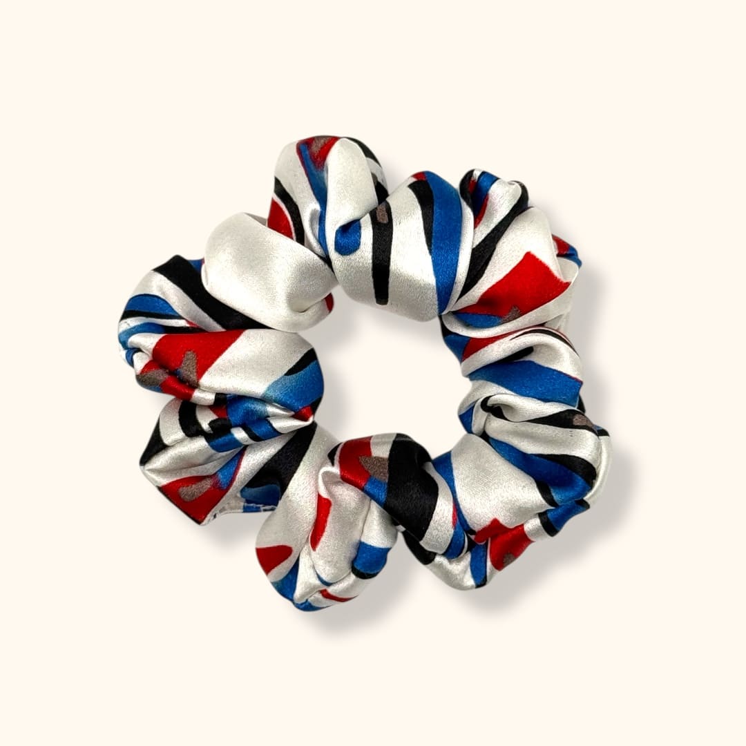 • Balta su raudonos bei mėlynos spalvos ornamentais ,,Midi” gumelė – žaisminga ir subtili plaukų detalė.