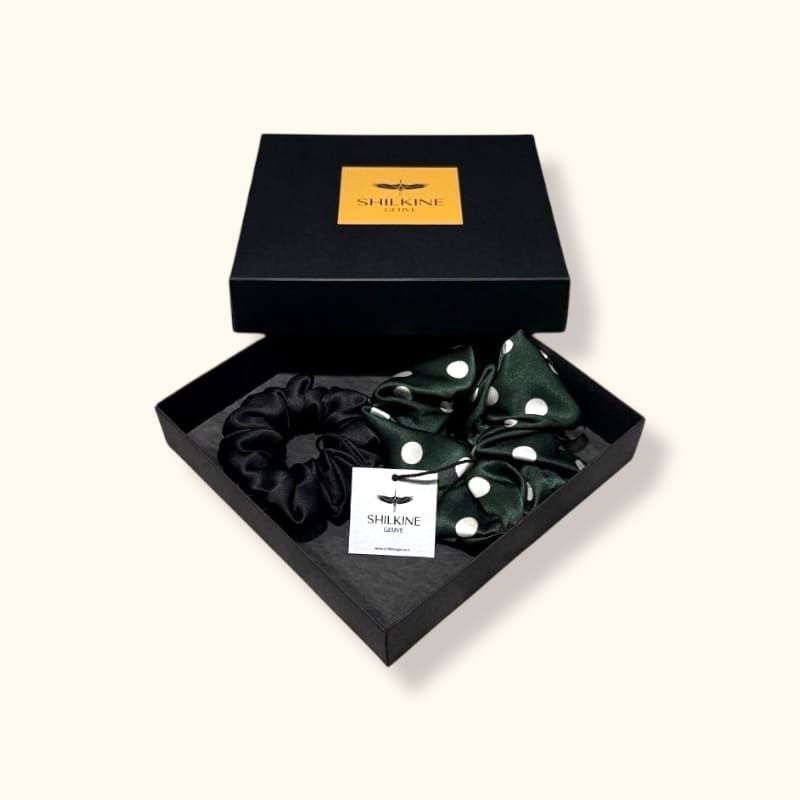 Prabangios, plaukų nepažeidžiančios gumelės, elegantiškai supakuotos juodoje dėžutėje – puiki dovana sau ar artimam žmogui.