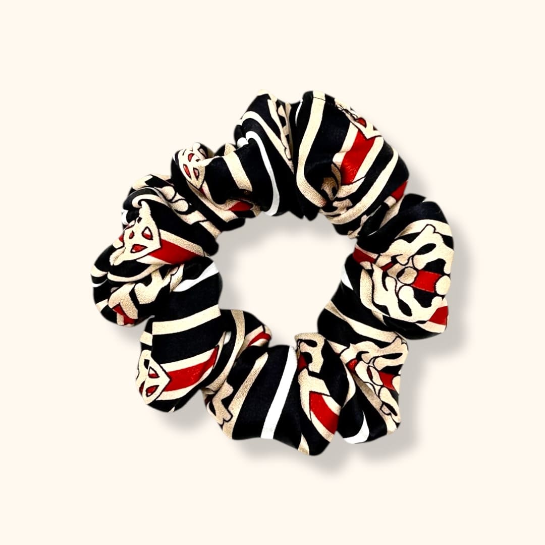 Juoda ,,Maxi” gumelė su švelnaus aukso ir raudono ornamento raštu – prabanga ir subtilumas viename, suteikianti elegantišką akcentą jūsų šukuosenai.