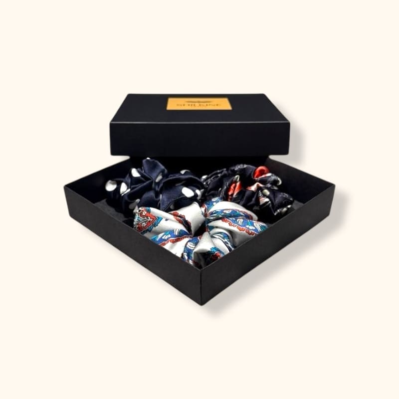 Prabangios, plaukų nepažeidžiančios gumelės, elegantiškai supakuotos juodoje dėžutėje – puiki dovana sau ar artimam žmogui.