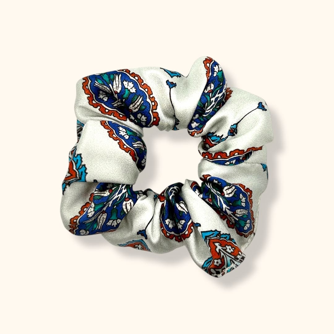 • Tamsiai mėlyna su ornamentais ,,Mini” šilkinė plaukų gumelė – smulki ir miela detalė, kuri nudžiugins bet kurią mažą mergaitę ar suteiks rafinuotą akcentą suaugusiųjų šukuosenai.