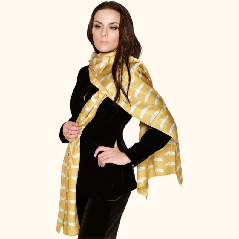 Šilkinis ilgas šalikas – Auksinė gervė