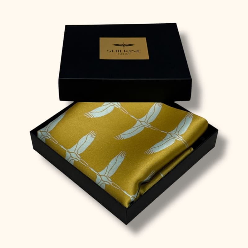 Natūralaus šilko šalikas „Auksinės gervės“ – prabangi dovanos idėja