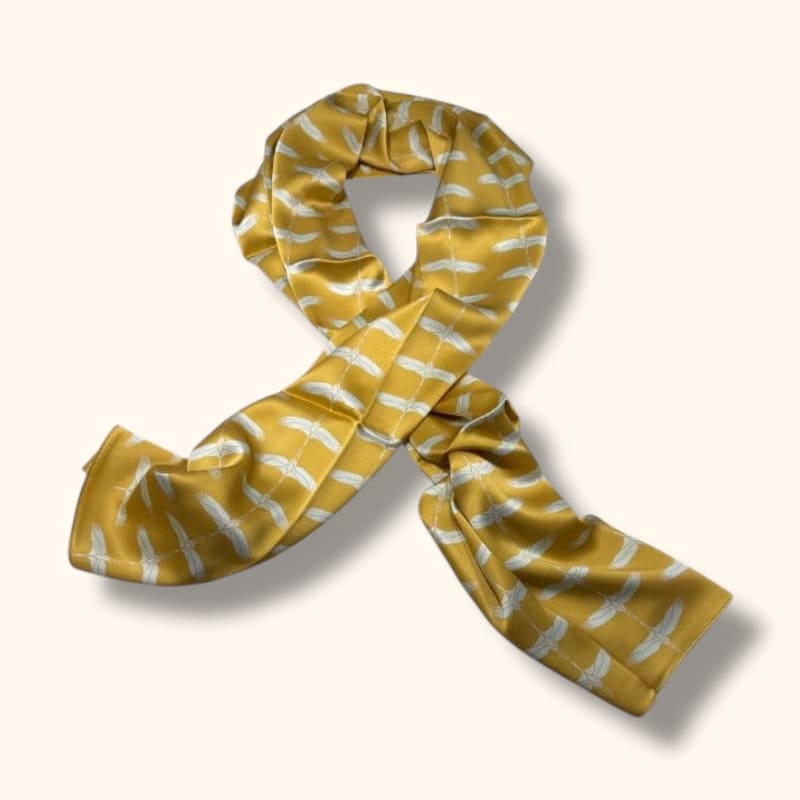 ✦ Rinkinį sudaro ilgas 200 × 50 cm šalikėlis ir „Maxi“ dydžio šilkinė plaukų gumelė iš to paties rašto audinio – harmoningas ir stilingas derinys