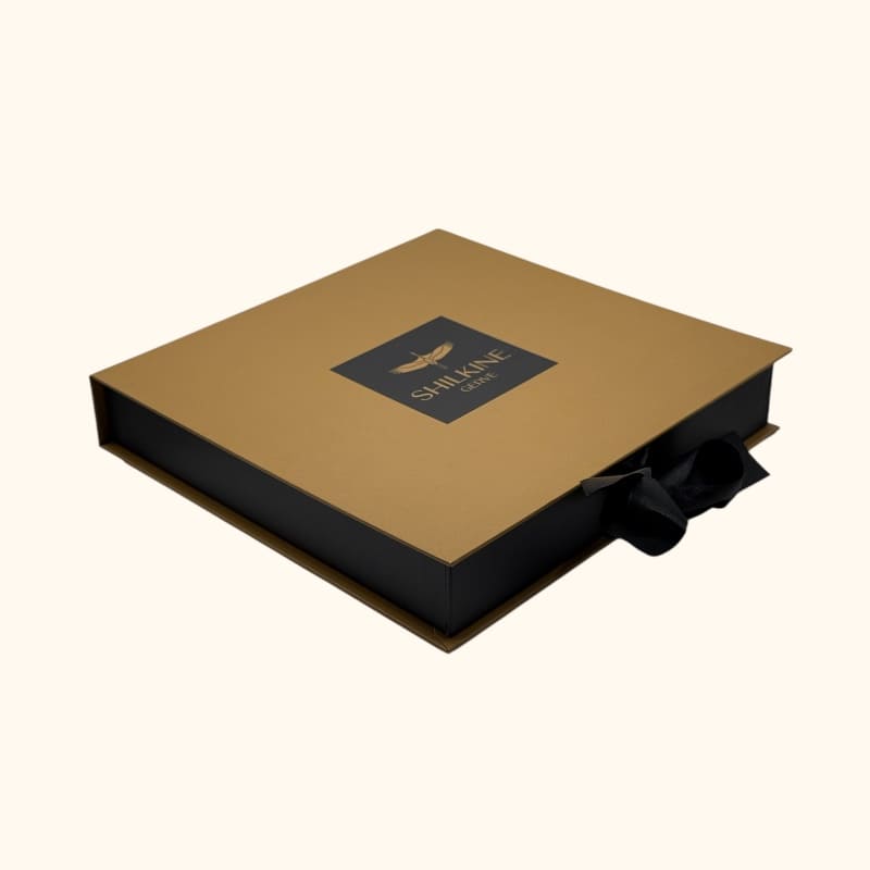 ✦ Prabangi pakuotė: šilkiniai aksesuarai supakuoti į švelnų šilkinį popierių ir pristatomi elegantiškoje luxury dovanų dėžutėje