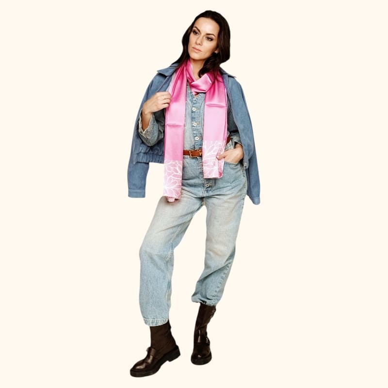 Šilkinis rožinis šalikas 200*50cm – prabangi dovanos idėja