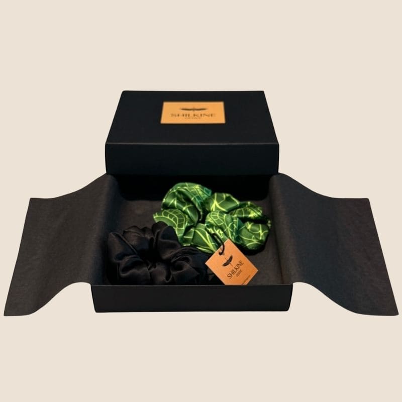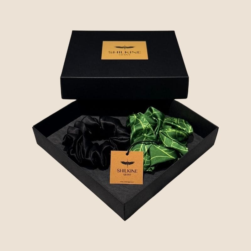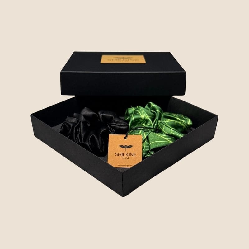 Prabangios, plaukų nepažeidžiančios gumelės, elegantiškai supakuotos juodoje dėžutėje – puiki dovana sau ar artimam žmogui.